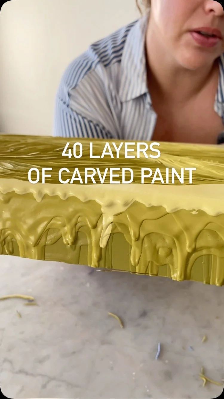Rory Linn is a New Orleans-based artist known for her distinctive layered paint carvings, a technique that draws on her formal printmaking training at Portland State University, where she earned a B.S. in Printmaking. Working from her home studio, she applies the precision and layered thinking of relief processes to paint, building up multiple layers of paint over several weeks, then carves into them to create textural surfaces that capture the interplay between light and shadow.